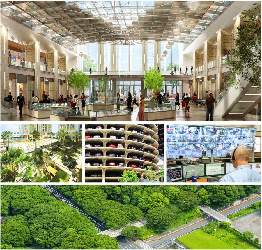 Hệ thống thang máy hiện đại, tốc độ cao của các tòa nhà sẽ giúp cho người dân đi lại thuận tiện, nhanh chóng. 14 thang máy được bố trí từ tầng hầm dành cho các khu vực thương mại, dịch vụ. 28 thang máy dành cho khu vực căn hộ. Ngoài ra còn có 14 thang bộ thoát hiểm, 4 đường dốc và 2 thang máy nâng hàng.